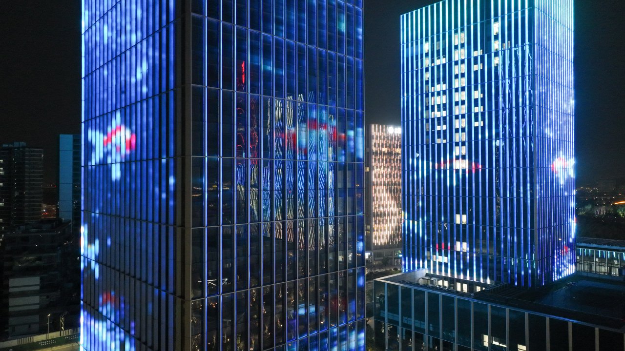 工程目的:為了提升桐昆集團總部大樓的夜間景觀效果,突出其建筑特色和企業形象,同時節約能源和保護環境,采用了泛光照明的方式對建筑外立面進行燈光設計和施工。