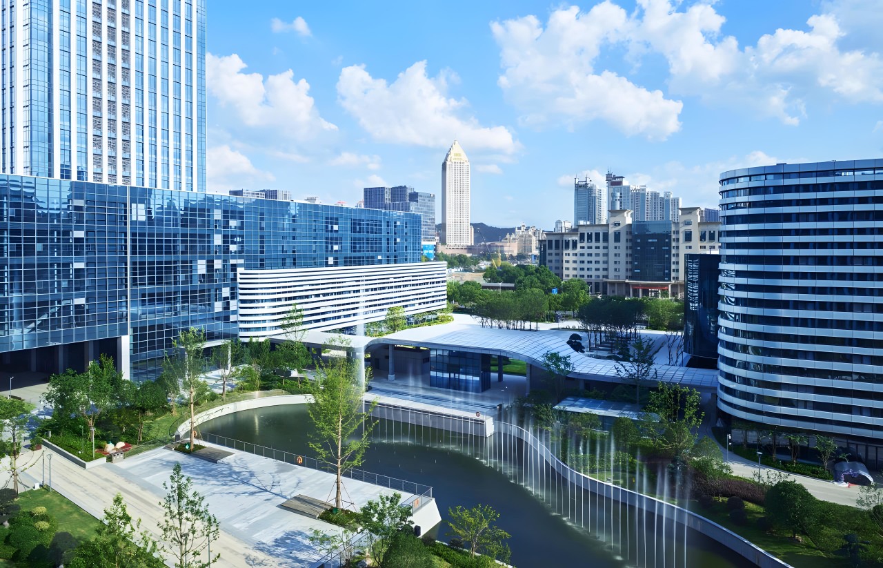 項目特色:景觀設計以“科技創(chuàng)新”為主題,運用現(xiàn)代簡約的風格,結合蕭山的地域文化和生態(tài)特色,打造一個集展示、交流、休閑、文化等功能于一體的室外空間。景觀設計采用了多種材料和元素,如鋼結構、玻璃、水景、雕塑、燈光等,形成了富有層次和變化的視覺效果。景觀設計還充分考慮了人流動線和功能分區(qū),為不同需求的人群提供了舒適和便利的環(huán)境。