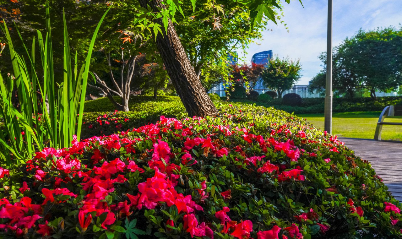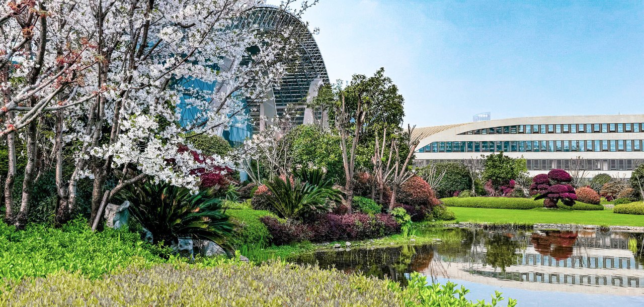 杭州國際博覽中心屋頂花園綠地面積超過5萬平方米,相當于8.5個標準足球場,水池面積約6420平方米,鋪裝園路面積約9473平方米,古建及風井面積約1000平方米,栽植各類苗木1萬余株、色塊苗100多萬株。