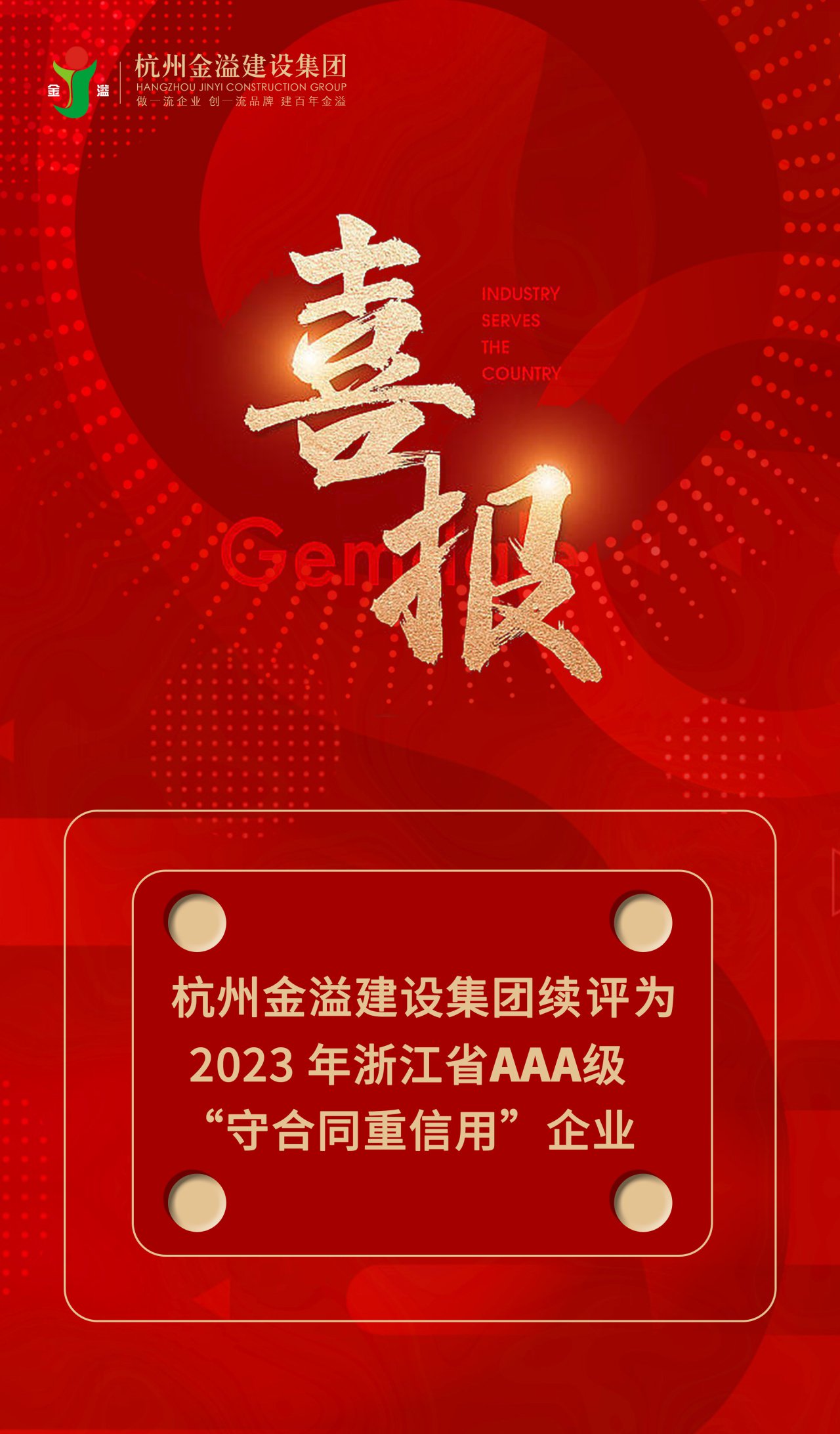 杭州金溢建設(shè)集團(tuán)續(xù)評(píng)為2023浙江省AAA級(jí)“守合同重信用”企業(yè)