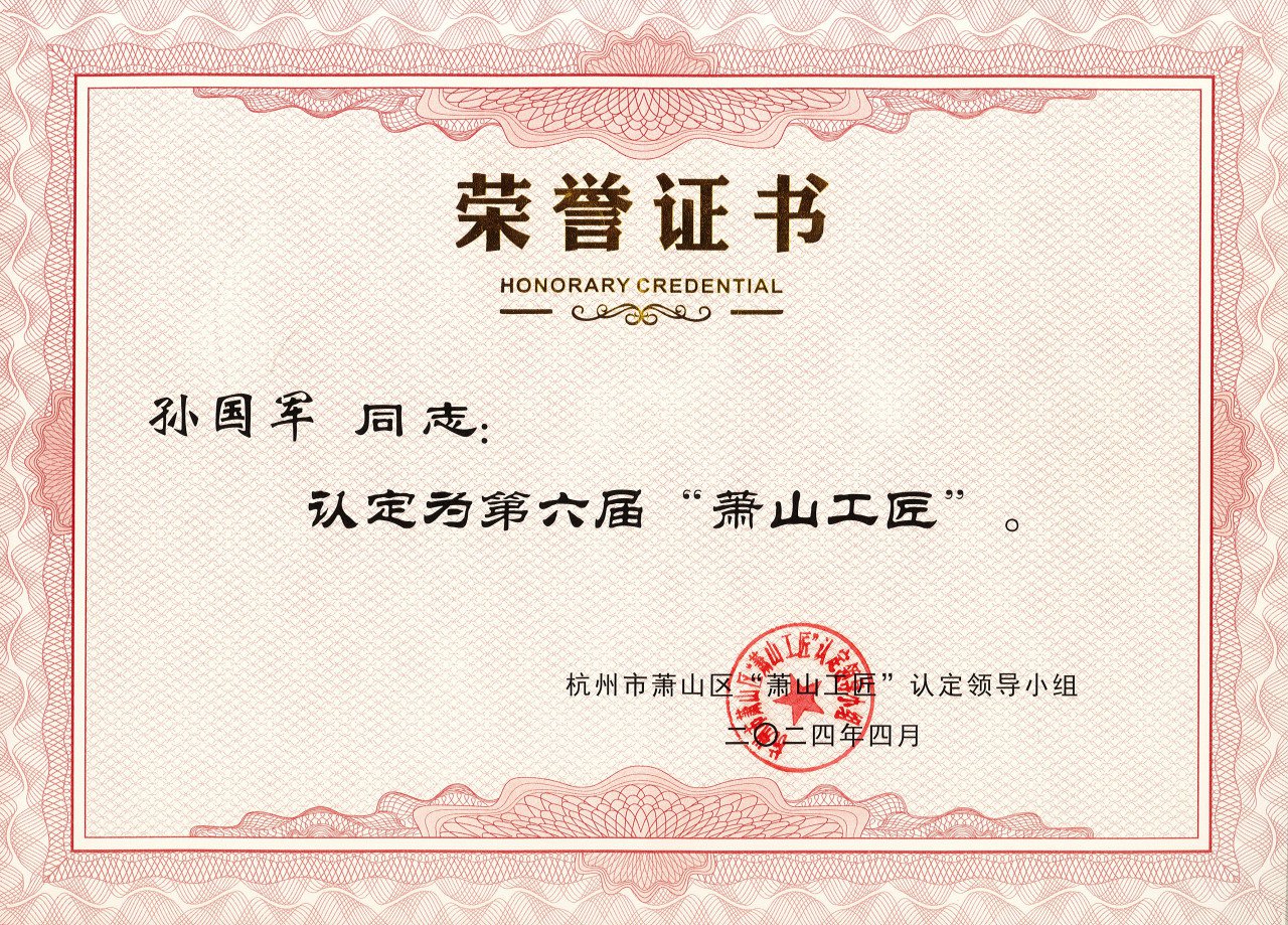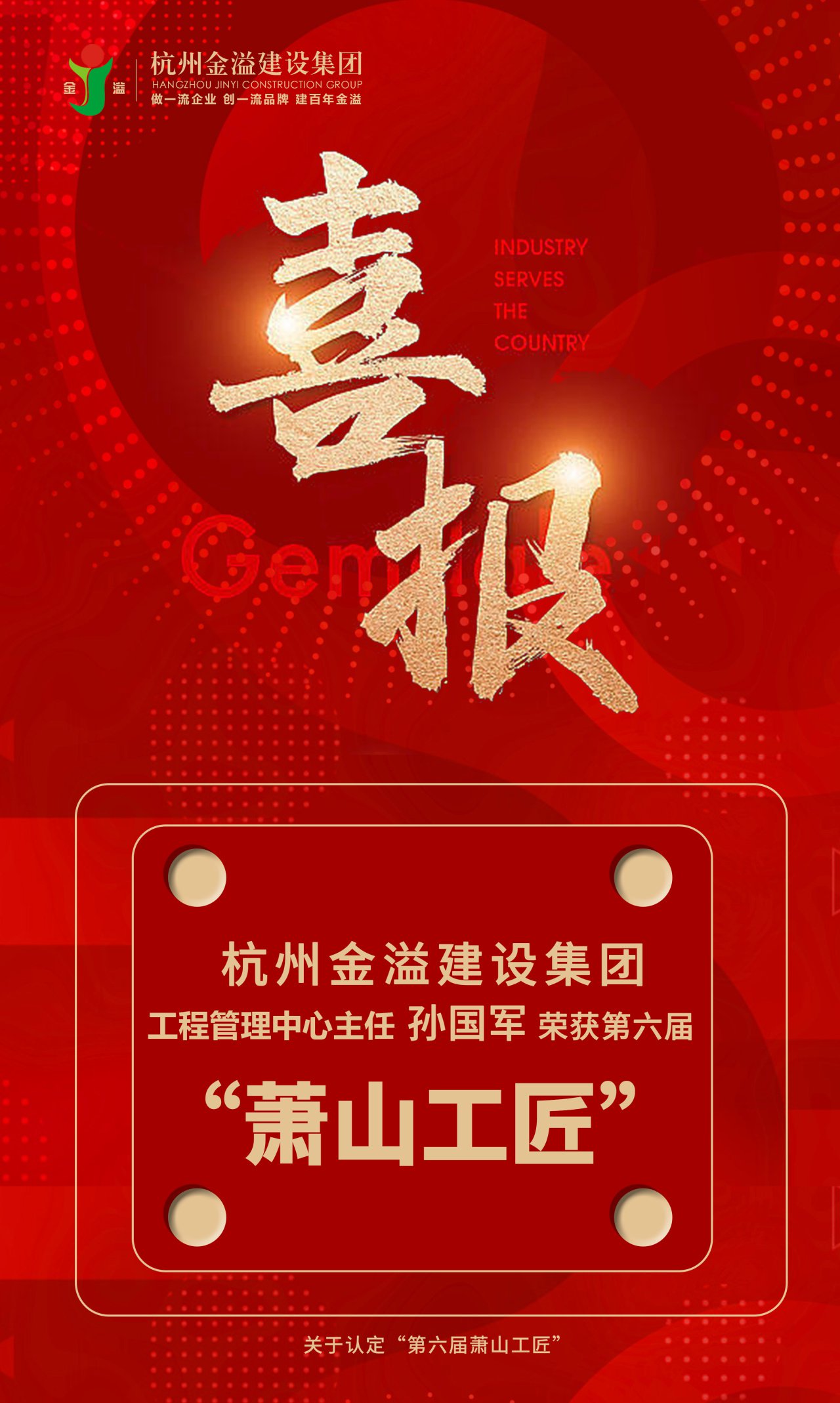 近日,杭州市蕭山區“蕭山工匠”認定領導小組公布了2024年第六屆“蕭山工匠”提名獎名單,杭州金溢建設集團有限公司工程管理中心主任孫國軍獲評“蕭山工匠”。