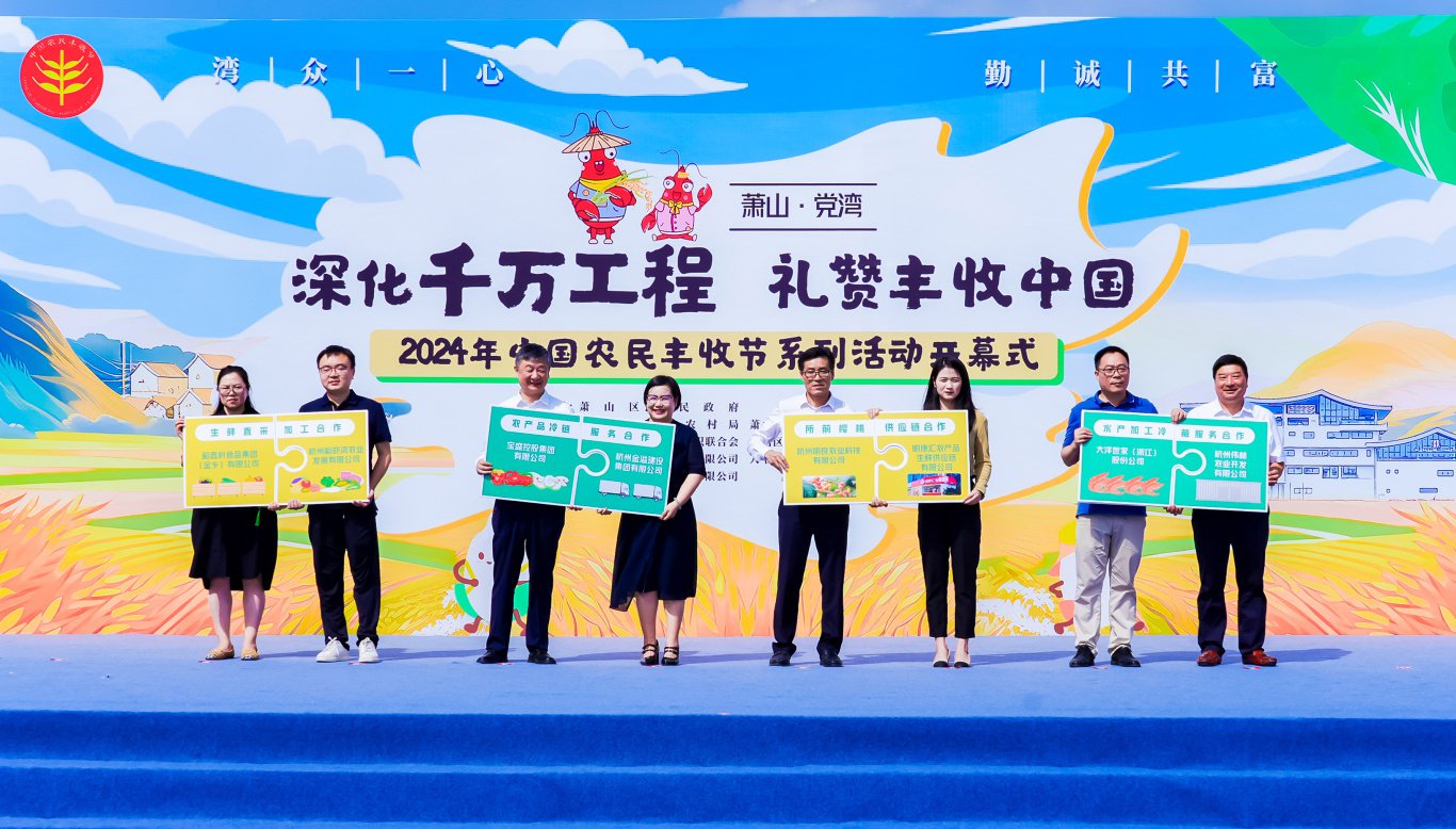9月29日上午,以“深化‘千萬工程’ 禮贊豐收中國”為主題的2024年中國農民豐收節(蕭山·黨灣)系列活動開幕式在位于黨灣鎮慶豐村舉行。金溢集團董事長盧條英、金溢冷鏈總經理孫飛等出席本次活動。