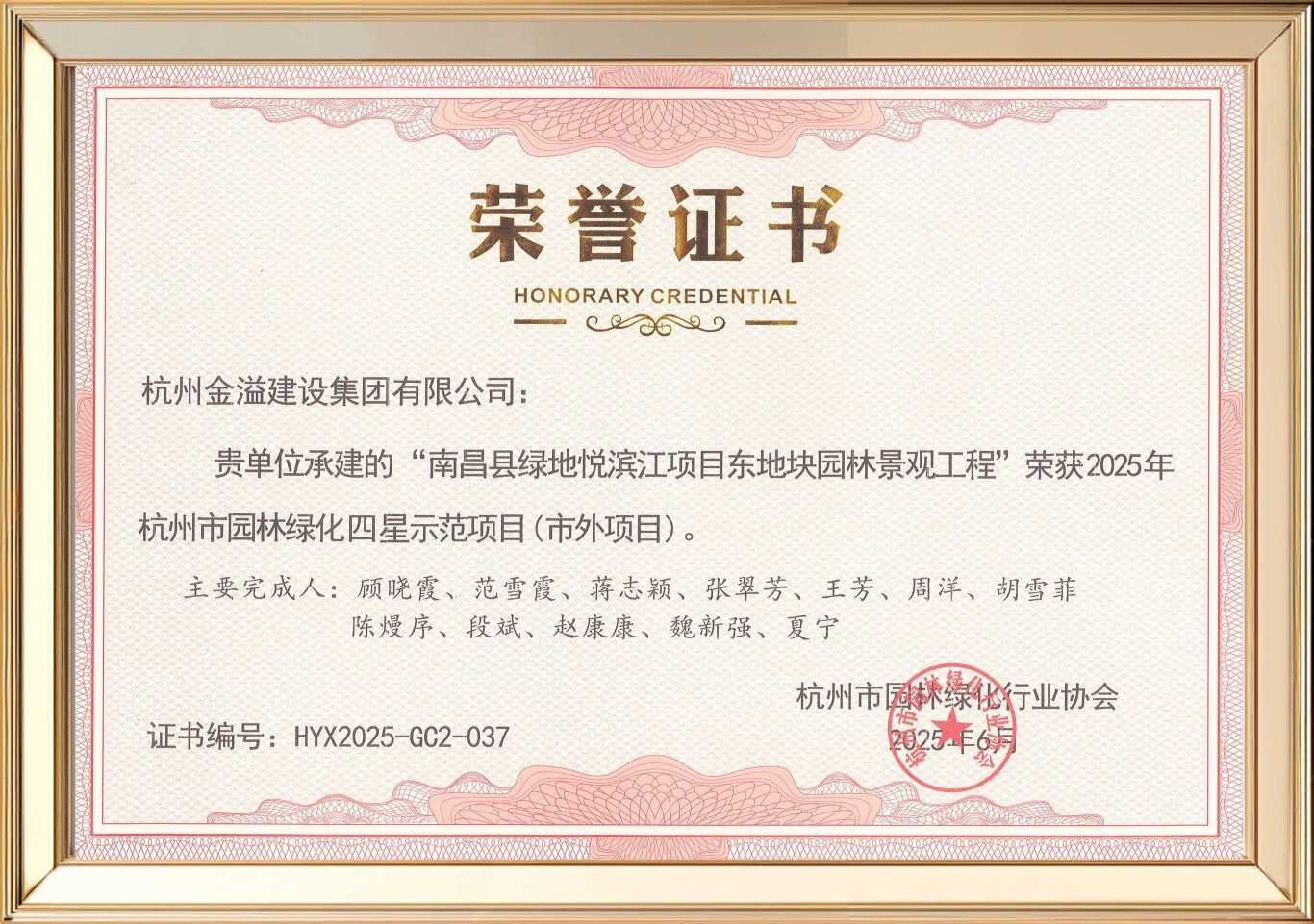 九堡大橋·南接線高架綠化美化提升 2025 JIUBAO BRIDGE GREENING IMPROVEMENT 九堡大橋·南接線高架綠化美化提升 本案主要是九堡大橋南接線高架橋兩側(cè)及匝道進行綠化美化提升,主線高架橋及部分匝道橋路側(cè)護欄布置花箱綠化。 不到14公里的高架空間 從機場高速互通到南橋亭 月季在兩側(cè)悄然綻放,匝道被花意溫柔包裹 那些看不見細節(jié),也在默默托舉這份美好 項目名稱丨九堡大橋南接線高架綠化美化提升 項目地點丨杭州 承建單位丨杭州金溢建設集團有限公司 南昌縣綠地·悅濱江項目東地塊園林景觀工程 2025 NANCHANG GREENLAND YUE BINJIANG LANDSCAPE 南昌縣綠地·悅濱江項目東地塊園林景觀工程 本案位于江西省南昌市南昌縣河洲路以西,象湖四路以北,江南大道以東,緊挨鐵路線。內(nèi)容含硬質(zhì)景觀小品(含土建、裝飾、安裝)、苗木、小區(qū)道路、圍墻等。 開闊的陽光草坪,喬、花草、礫石相互輝映 游園步道曲折有致地穿插其間,移步異景 感受花木、流水、光和風編織的詩意畫卷 童心幻夢 綠茵為伴 兒童樂園以高飽和度的配色 為孩子們打造一個繽紛多彩的戶外活動空間 昂首待發(fā)的火箭將帶領(lǐng)孩子們展開一場充滿歡趣的太空旅行 行走在綠蔭與綠氧環(huán)繞的小區(qū)中 高低錯落的景觀與建筑自然銜接 穿梭于綠意之間,于林下,讀一本書 享受園林城市喧囂的靜謐 項目名稱丨南昌縣綠地悅濱江項目東地塊園林景觀工程 項目面積丨15600㎡ 項目地點丨江西南昌 承建單位丨杭州金溢建設集團有限公司 金溢建設集團由衷地感謝領(lǐng)導和專家對集團的認可和鼓勵,這份榮譽無疑是對集團工作成果的肯定。我們將珍視這份榮譽,繼續(xù)堅持創(chuàng)新,不斷提升自身的核心競爭力,為杭州市園林行業(yè)的發(fā)展做出更大的貢獻。